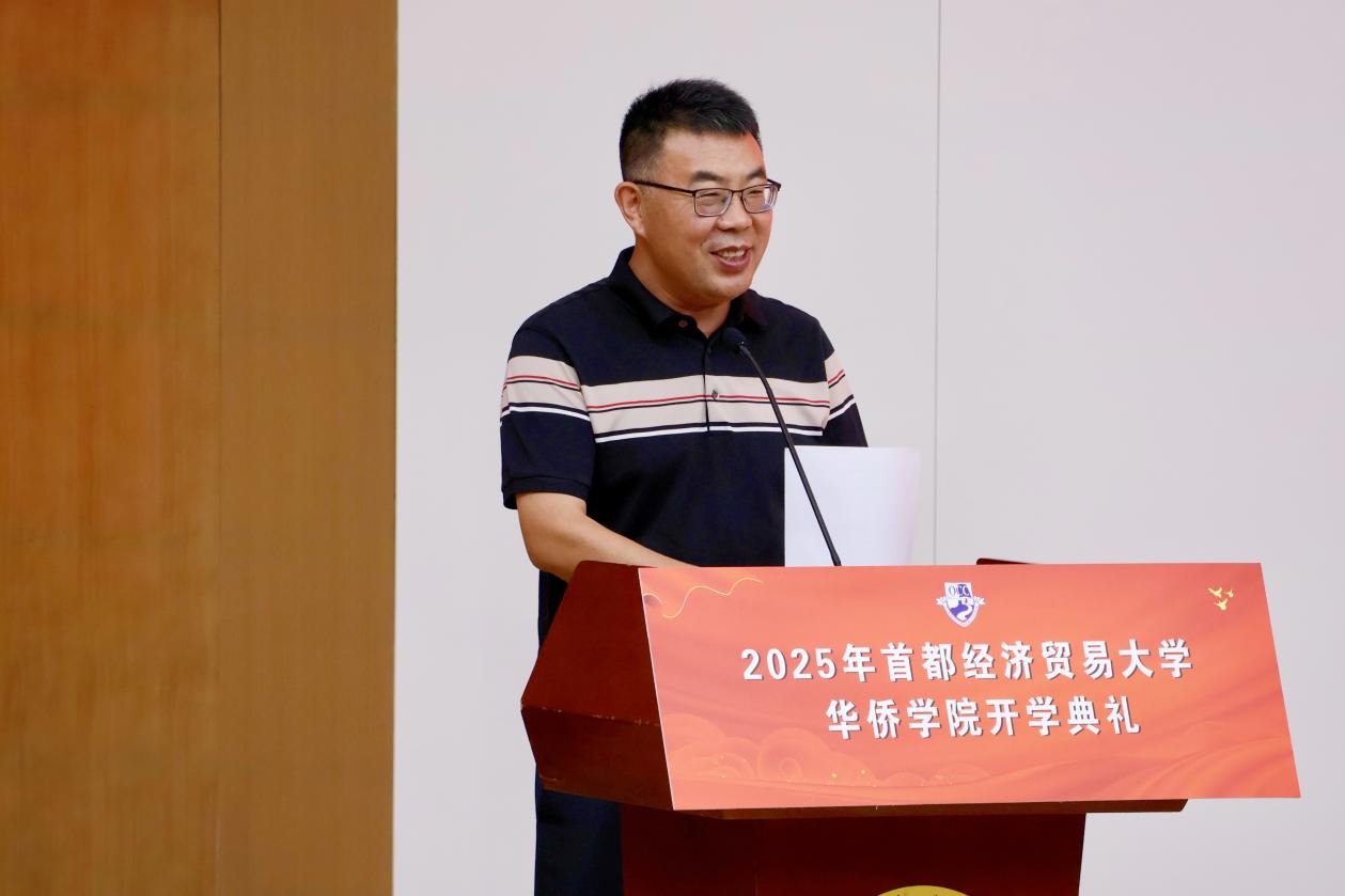 李百兴院长代表学院领导致辞。他为2025级新生们详细介绍了华侨学院的办学特色和人才培养模式。他强调,学院致力于培养融通中外、具备国际视野和跨文化沟通能力的复合型人才。李百兴鼓励新生们珍惜大学时光,努力奋斗,成为德才兼备、有责任感、有全球竞争力的优秀青年。同时,他也介绍了学院与海外名校的合作关系,学院将为新生们提供广阔的深造空间,期待大家能够用好学院资源,成长为最棒的“OCCers"。