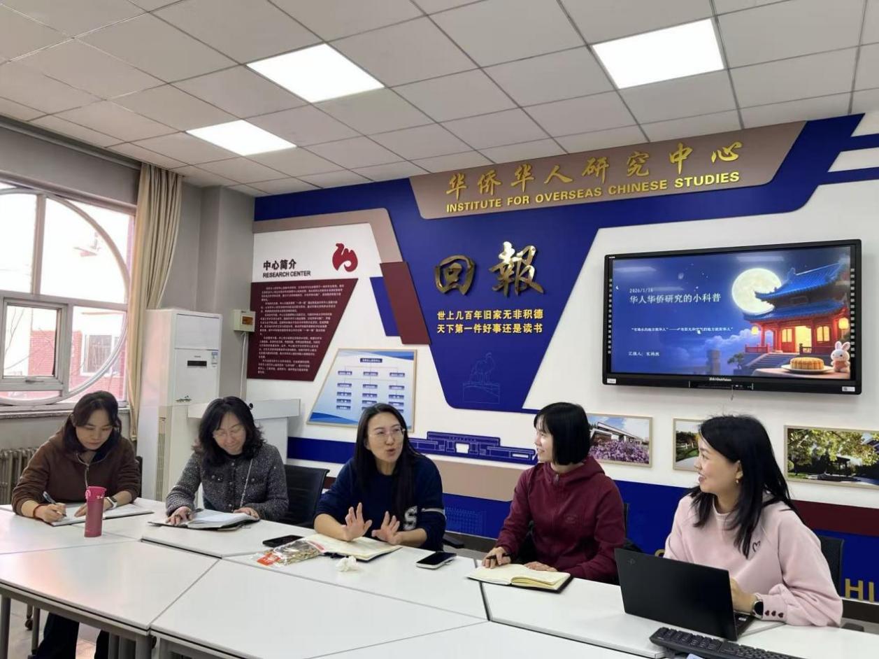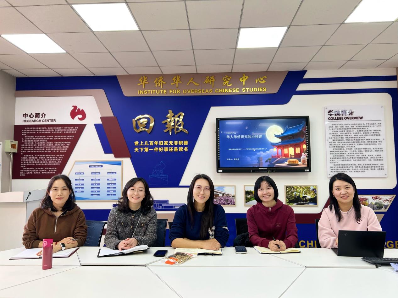 1月16日, 华侨华人研究中心学术研究部首次研讨会在启铸恭温楼C218会议室顺利举行。华侨学院副院长、研究中心副主任兰君主持会议,张薇、朱小丽、宋祎然、华章等骨干教师参加会议。