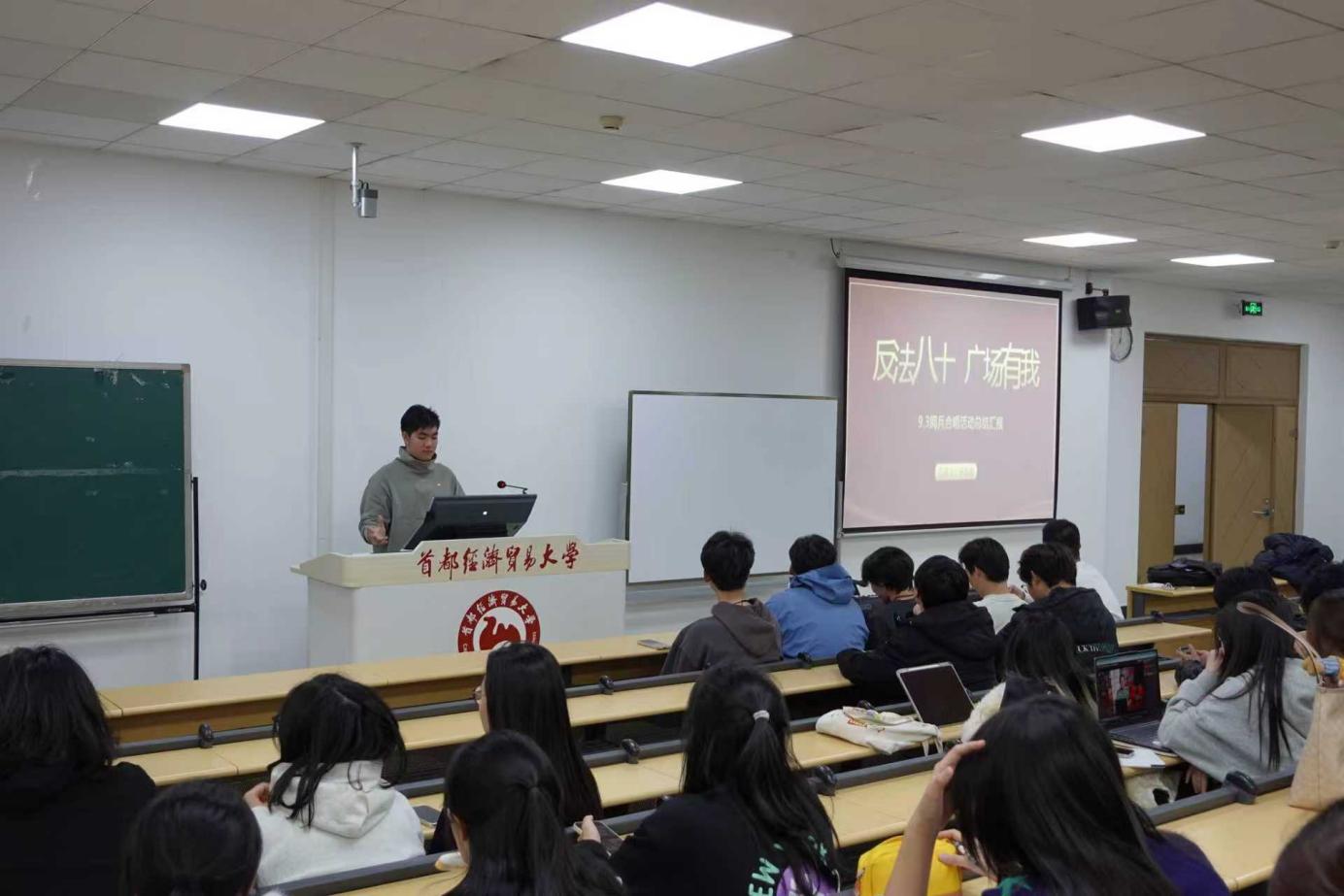 11月24日下午,华侨学院团委在启铸恭温楼E103举办“烽火映初心,传承砺使命”主题团日活动。本次活动邀请了参与纪念中国人民抗日战争暨世界反法西斯战争胜利80周年大会的学生骨干组成宣讲团,吴凡、杨若琪、贾晨冉、王延丞四位同学作为分享人,面向一二・九合唱全体成员分享亲身经历、交流深刻感悟。