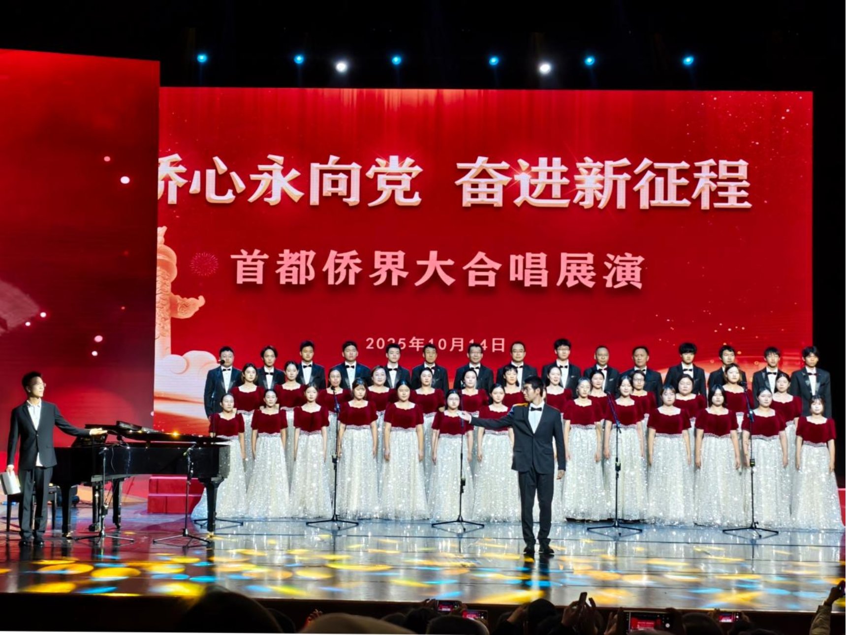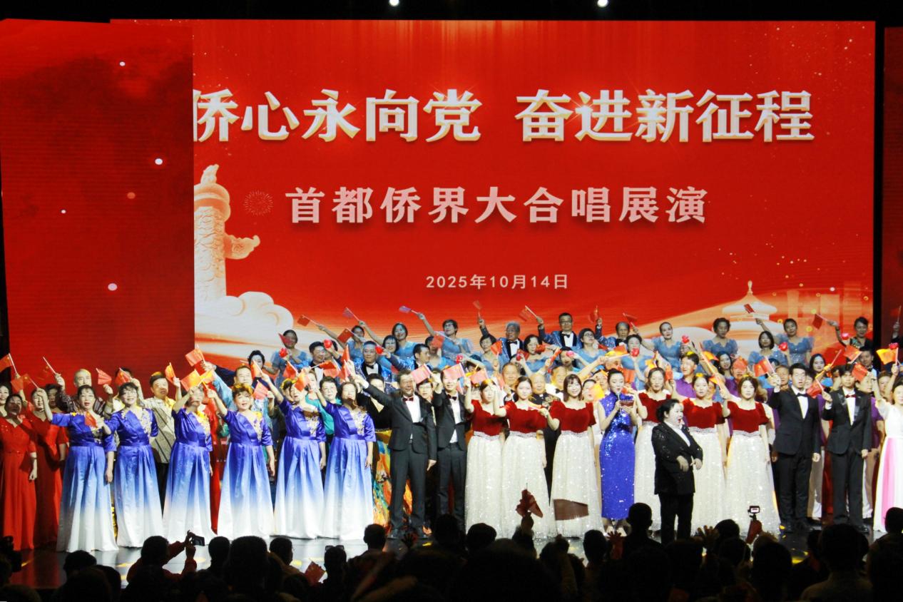 10月14日下午,“侨心永向党 奋进新征程”首都侨界大合唱展演活动在北京民族文化宫举行。来自首都各界的800余名侨界代表齐聚一堂,作为唯一一所市属高校代表,首都经济贸易大学华侨学院“青春侨之声”合唱团与清华北大合唱团同台演出。共同以合唱为纽带凝聚侨心侨力,用歌声表达听党话、跟党走,共赴新征程的坚定决心。华侨学院党委副书记蔡丹担任领队。