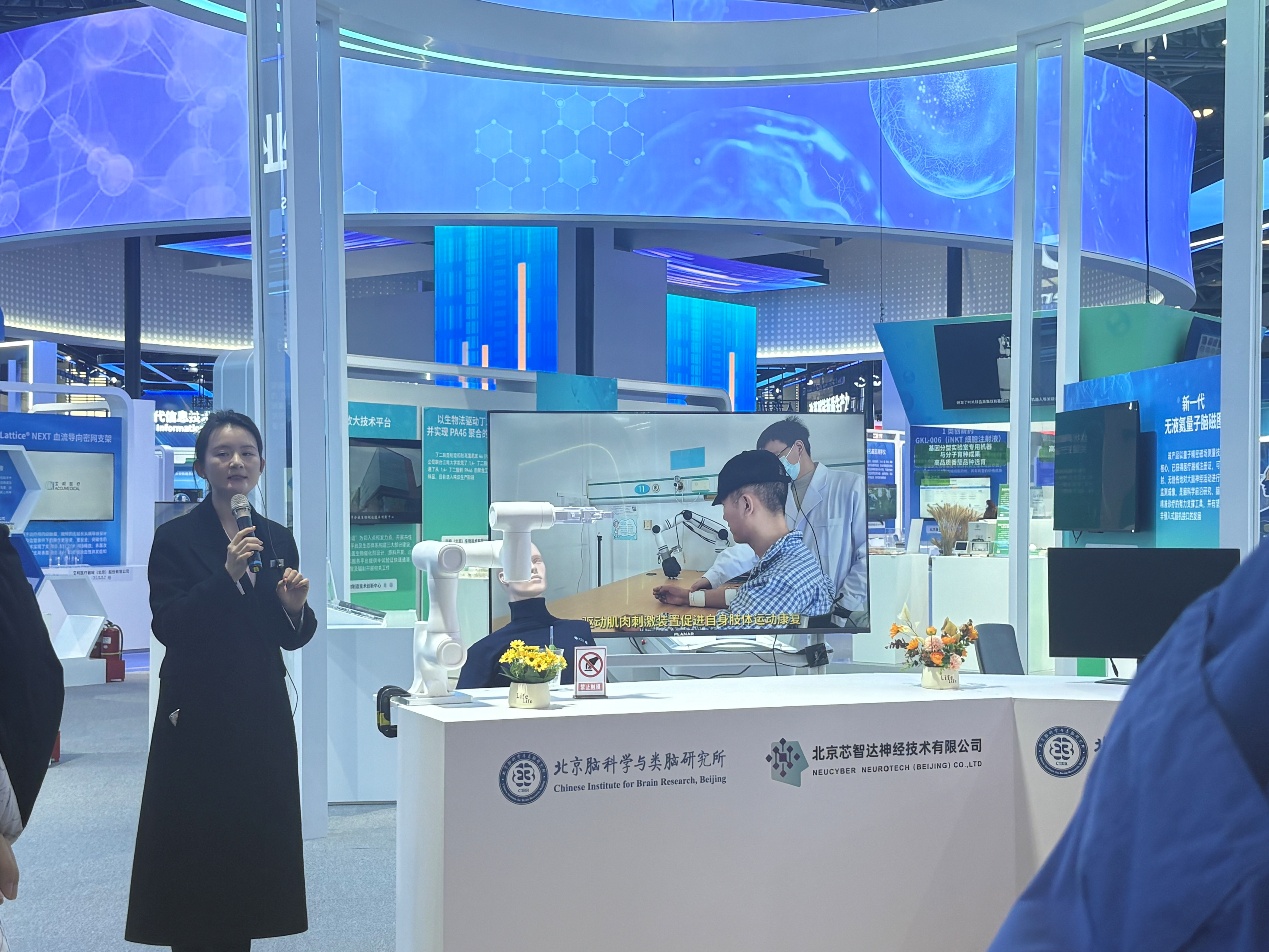 活动伊始,师生团队在专业讲解员的引导下实地参观了中关村展示中心各核心展区,近距离接触人工智能、生命科学、数字算力、基础学科等领域的前沿成果。从AI解码生命展区中怀柔科学城团队利用AI解析神经元活动的突破性研究,到支付宝AI健康管家、蚂蚁密态计算等数字技术在民生领域的落地应用;从化学科学展区的液态金属复合材料,到数学科学展区支撑工业软件的数学内核,再到大冷量无液氦稀释制冷机等高端装备的技术突破,师生们不仅感受到科技研发的硬核实力,更从科技成果服务民生、赋能产业的实践中,体会到科技创新“扎根需求、服务社会”的温度与价值。