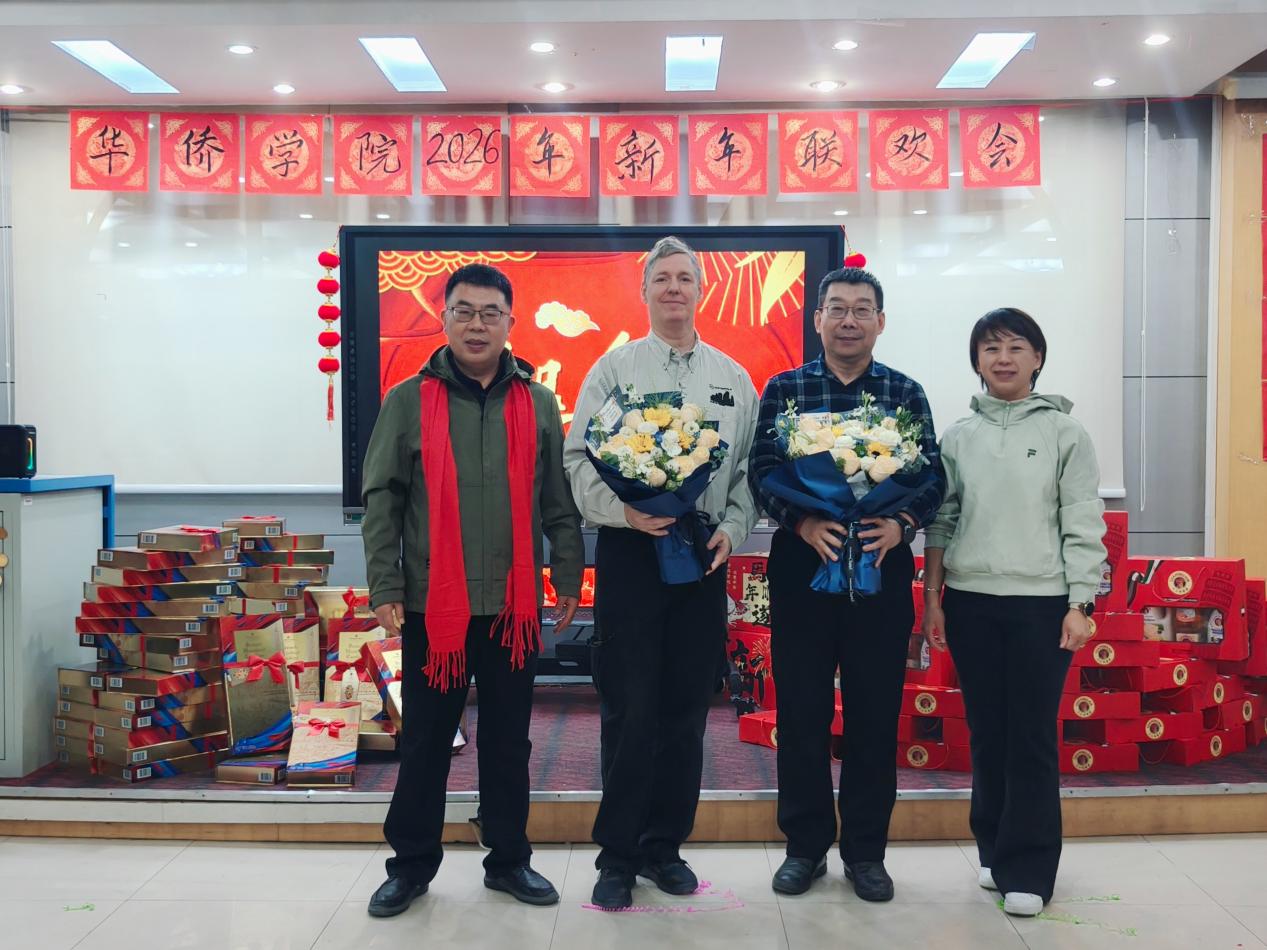 联欢会特别设置了温馨感人的荣退仪式。学院为多年来辛勤付出、贡献卓越的李险峰老师与外籍教师SKPPIER举办荣退仪式,感谢他们为华侨学院事业发展的无私奉献。现场掌声如潮,洋溢着敬意与祝福。