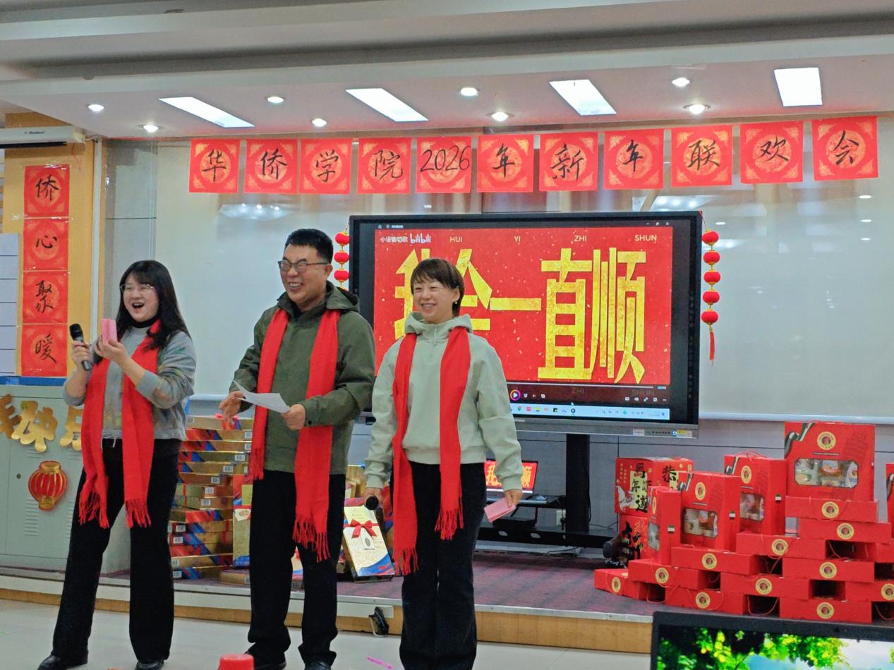 欢声辞旧岁,歌舞迎新年。1月16日,华侨学院“侨心聚暖 岁启新程”2026年新年联欢会在喜庆祥和的氛围中精彩上演。学院领导、教职工欢聚一堂,共迎新春,凝聚侨心,展望新程。