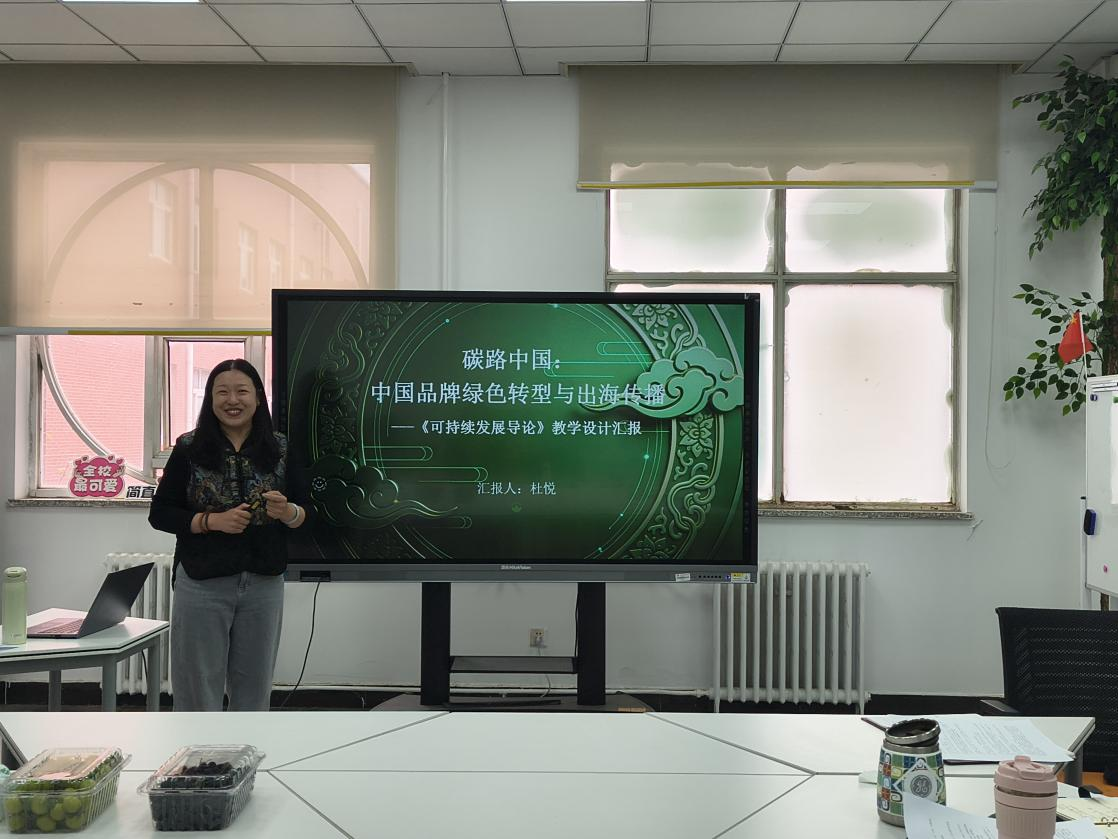 4月8日,第二次研讨会如期举行。闫晓玲老师和杜悦老师分别进行了教学分享。闫晓玲老师结合马年主题,在《大学英语》课程设计中融入了习近平文化思想中“赓续中华文脉”“文明交流互鉴”等理念。她通过设计“马年第一课”,引导学生从分享春节故事升华至理解春节承载的和平、和谐理念是“构建人类命运共同体的通用符号”,并鼓励学生通过短视频等形式用英语讲述中国故事,增强文化自信与传播意识。杜悦老师则结合新开课程《可持续发展导论》,分享了习近平生态文明思想融入课程设计的思路,以“碳路中国,中国品牌绿色转型与出海传播”为主线,从教学目标、教学活动、教学评价等方面进行了完整的阐述。