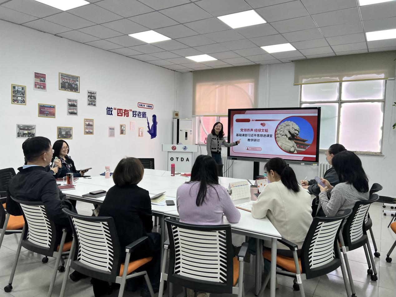 4月1日,首次研讨会在学院教师发展活动室举行。会议由基础课部主任张薇老师主持,她对教师们的寒假学习成果进行了总结,并从习近平新时代中国特色社会主义思想进课堂的重点、角度和实操策略三个方面进行了系统梳理。她强调核心在于将习近平新时代中国特色社会主义思想作为课程的“价值内核”,实现从“语言能力培养”到培养“兼具家国情怀、国际视野和跨文化沟通能力的时代新人”的育人目标升级。随后,张薇老师以“习近平新时代中国特色社会主义思想融入《新质商业演讲力》课程的设计”为例进行了教学展示,详细阐述了如何将“新质生产力”、“高质量发展”等理念与商业演讲教学有机融合,培养学生在国际商务场景中讲好中国故事、构建中国话语体系的能力。这一前沿案例引发了与会教师的热烈讨论。