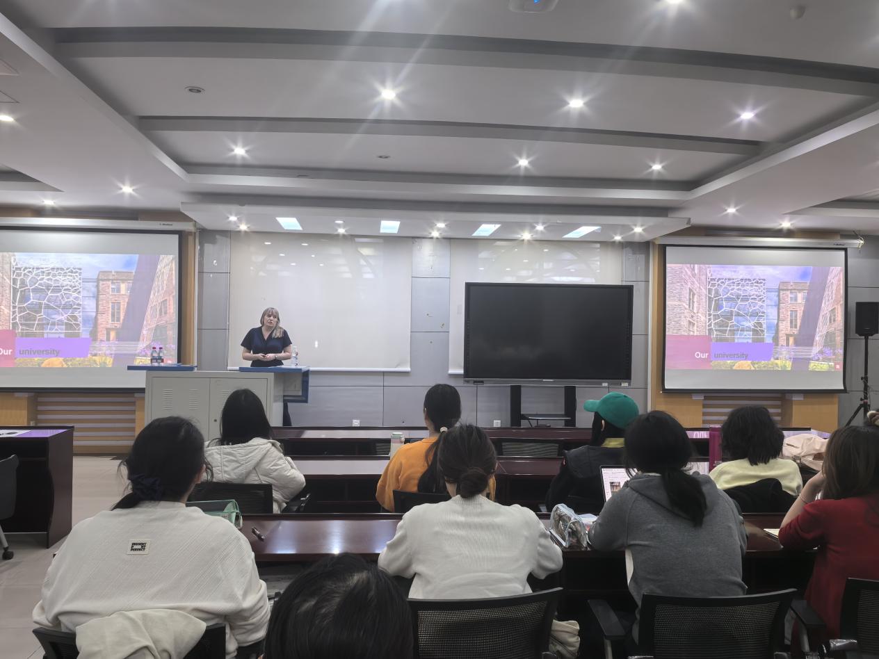 3月25日,布里斯托大学科研创新中心主任Jennifer Johns教授莅临我院,面向学生开展研究生项目宣讲,宣讲会由教务管理办公室杨博主持。