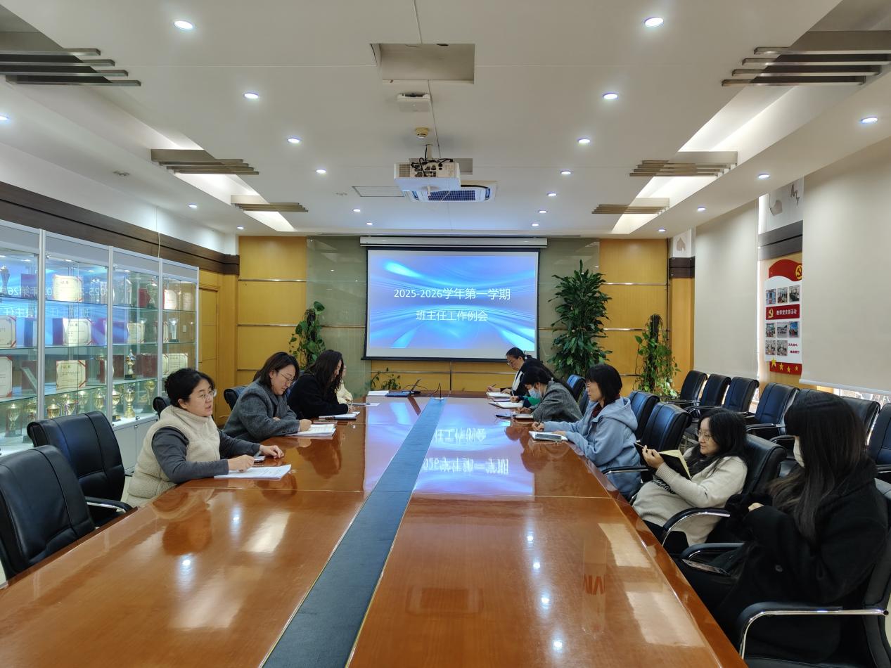 随后,刘文静向班主任们通报了学生安全工作会议精神,总结防诈“四不”原则;杨璐娟通报了思政教育工作的开展情况与心理健康教育工作的进一步安排;团委书记张琬晨介绍了近期团委学生活动的情况与下一步工作安排;赵静介绍了毕业生就业调研情况,以及本学期校友系列活动的开展情况。