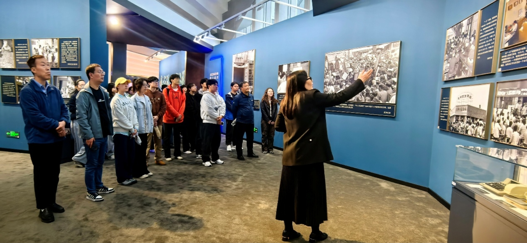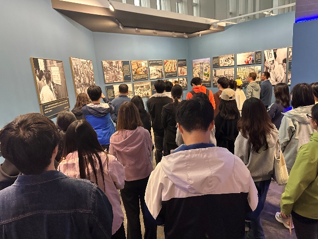 活动伊始,在讲解员的带领下,同学们依次参观了“国社之镜·世纪光影--建设金融强国”摄影展和“共赢的世界,绿色的发展”中国方案展示馆两个主题展览。