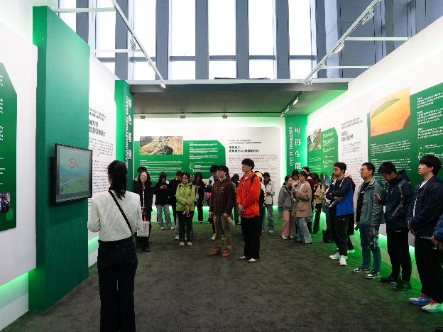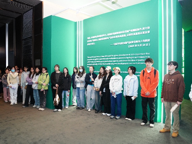 “共赢的世界,绿色的发展”中国方案展示馆,从绿色投融资、可持续农业、绿色基建、可再生能源、低碳交通等五个核心领域出发,生动诠释了蕴含东方智慧、秉持共赢理念的中国道路、中国方案和中国经验。展示馆以“发展的答案是共生,世界的未来在携手”作为结语,进一步深化了同学们对东方智慧与大国担当的理解与认同。